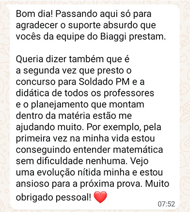 Estou comprometido com o seu sucesso. Minha missão é fornecer orientação personalizada e apoio contínuo, para que você se sinta preparado para superar qualquer obstáculo em seu caminho. Estou aqui para ajudar você a conquistar sua tão sonhada aprovação para Policia!