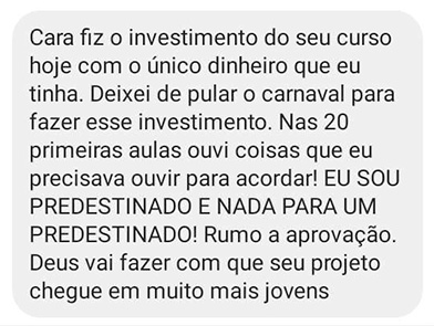 O maior combustível do nosso trabalho são as mensagens vibrantes de aprovação que recebemos dos nossos alunos: relatos de vidas restauradas, sonhos realizados e superação de dificuldades.
